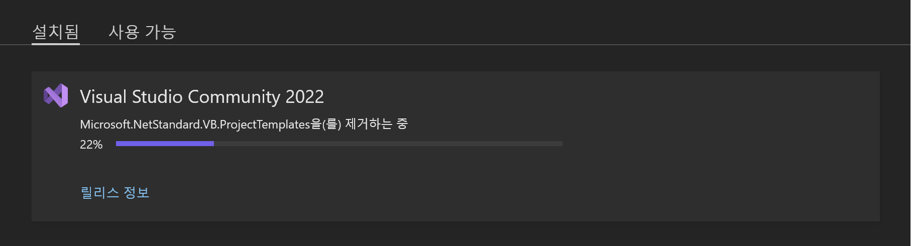 1. Visual Studio Installer์์ ์ค์น๋ ์ ํ ์ญ์